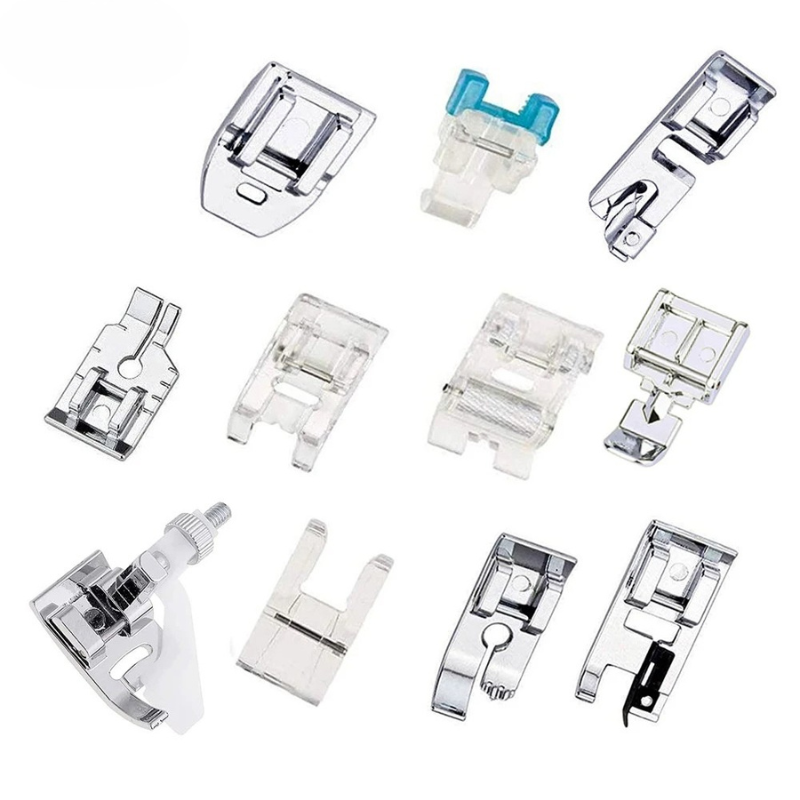 Dieses Set enthält 11 spezielle Nähfüße, die für eine Vielzahl von Nähaufgaben geeignet sind, darunter:- Kräuselfuß: Ideal zum Kreieren schöner Rüschen und Raffungen.