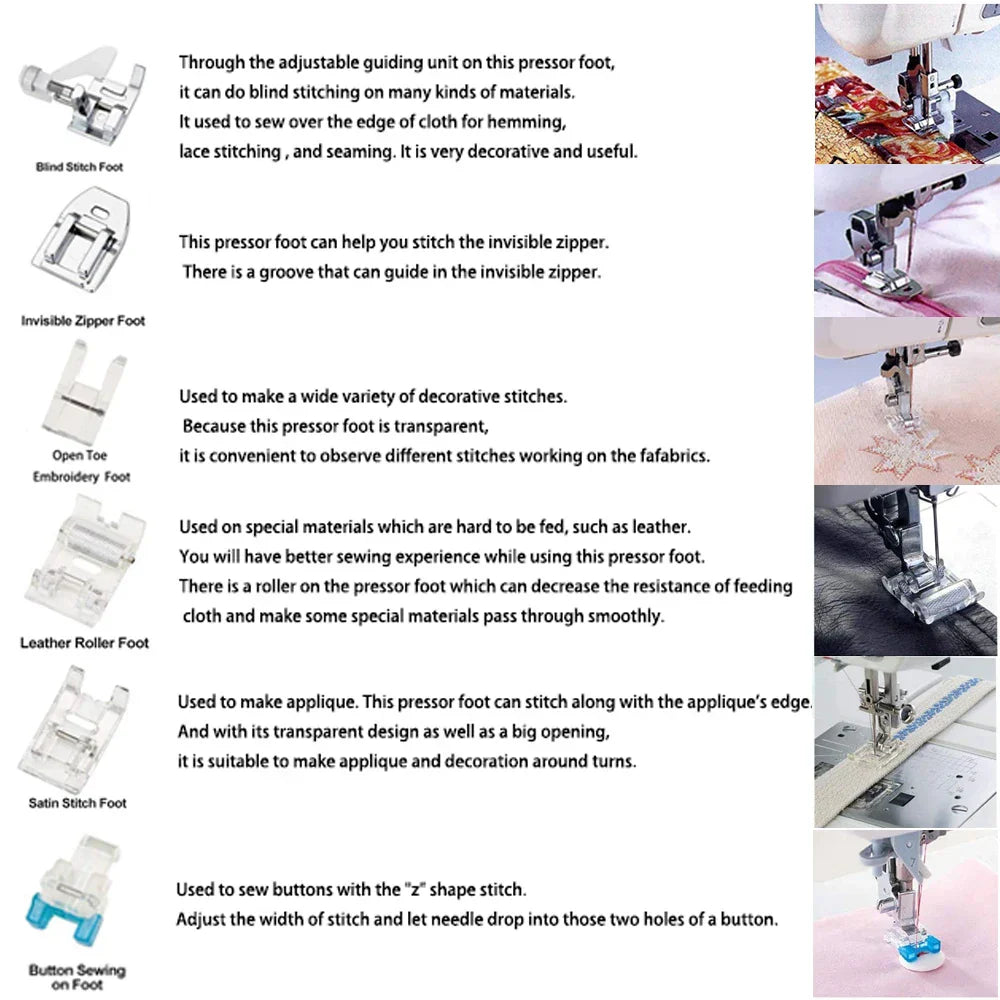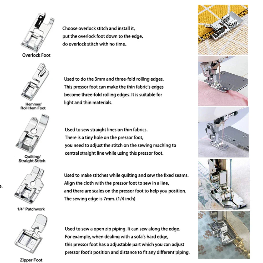 Dieses Set wurde speziell für die meisten Nähmaschinen mit niedrigem Schaft entwickelt und ist mit gängigen Marken wie den folgenden kompatibel:- Sänger